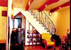 房子不分大小,总有一些边角空间存在利用和美化的问题。设计就是在不断地解决这样那样的矛盾,这些边角矛盾处理好了,会是精彩之笔,处理不好,反而会加强边角带来的累赘、紧张的感觉。 楼梯下面多为三角形,可以封闭起来做贮藏间,也可以利用它的造型做成展示区,摆放一些平日里的收藏品,这样似乎更美观一些。为了夸张斜线的存在,楼梯下的门洞做成三角形,形成斜线的延续,否则普通做法的水平门洞与楼梯下部的交结会有些生硬。
