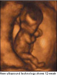 据BBC消息,利用一种能够生成3维图像的新型超频成像仪器,伦敦保健门诊由坎贝尔教授领导的扫描技术专家得到了只有12周的胎儿在子宫中“走动”的图像。