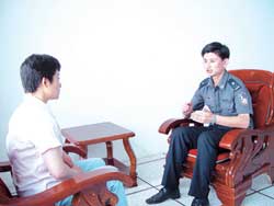为此,调遣处专门建立了心理咨询室,每个大队设立心理咨询员。入所教育时,心理咨询员对吸毒者专门进行心理知识讲座。结束入所教育后,心理咨询员给每个戒毒劳教人员建立心理咨询档案,测试他们的气质类型、行为类型等。