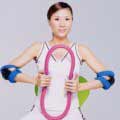 2、用双手及腹部互相抗衡施力的运动原理,将减肥圈往腹部的地方挤压,来回挤压12次为一个回合,请做3个回合,腹部特别肥胖的人可以做3~5个回合。