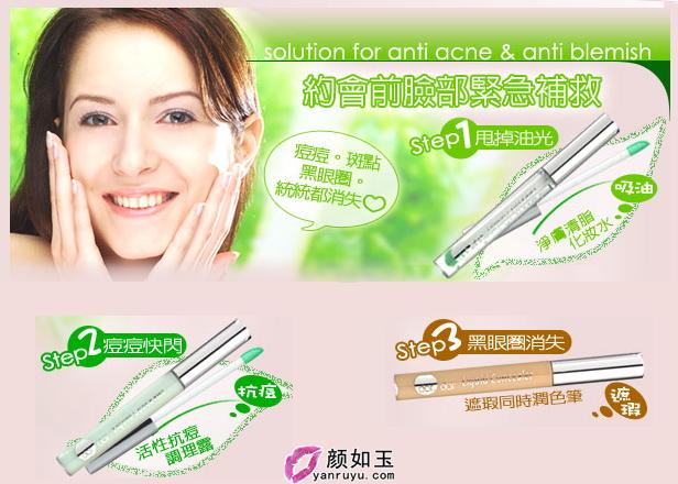 茶树去油抗痘遮瑕组*3入(药用) STEP 1: 净肤清脂化妆水--甩掉油光! 含有金缕梅萃取,能收敛毛孔,防止粉刺增生,并吸附分泌过盛油脂,去除老废角质,具有二次深层清洁功效。 STEP 2: 活性抗痘调理露--痘痘快闪族 含天然植物精华抗痘成分,促进肌肤新陈代谢,毛孔干干净净。天天擦有效预防痘痘产生,提供肌肤表皮细胞最好的成长状态,不含油脂清爽不黏腻,肌肤好吸收,有微微清凉感,味道温和不刺激! STEP 3: 遮瑕同时润色笔--黑眼圈消失! 滑顺有服贴感,自然肤色的遮瑕效果可修饰肌肤的瑕疵或红点,及修饰眼睛黑眼圈处。 容量:7ml X 3支 使用方法:洗脸后,先以化妆水直接涂抹于痘痘、面疱处,再涂以适量抗痘调理露,最后使用遮瑕笔使用指腹轻敲晕开,最后推匀即可。 适用肤质:适合所有肌肤使用。 活性成分:尿囊素、水芹、银杏、矢车菊、芦荟、长春藤、综合维生素、茶树、金盏花、薄荷、玫瑰果油 |