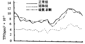 附图 正常组及冠心病组服用硫氮酮前、后TP、HFn、LFn 24 h变化曲线