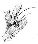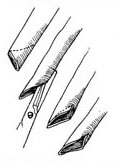 (2)大隐静脉断端45°切断,再纵向剪开