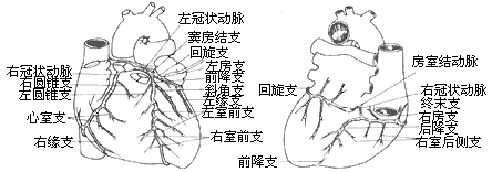 根据心脏十字区亦即心脏后壁两侧心室、心房及房室间隔交接处的血供来源,左、右冠状动脉分布情况可分为三种主要类型:
