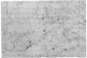 参照文献[7]进行,略有改进。阴性对照:肺组织切片预先经RNA酶处理后再行原位杂交。图像分析:每一玻片任选5个视野,自动检测阳性细胞面密度,取其平均值,进行统计分析。