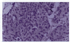 图2bcl-2在胃癌中的表达-阳性染色为棕黄色,Bcl-2主要表达在胞浆,DAB染色×400