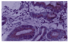 图3p16在慢性胃炎中的表达-阳性染色为棕黄色,p16在胞核、胞浆均有染色,DAB染色×400