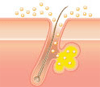 | 成人痤疮的一种重要类型,导因于皮脂与角质代谢失去平衡有关,与荷尔蒙分泌、化妆保养、空调的环境、睡眠周期都有关系。皮脂分泌不顺畅,加上毛囊壁的角质增厚,会形成显微粉刺(microcomedo)阻塞毛孔。许多女性在额头与两颊会有一些暗藏的粉刺面疱,脸颊会觉得粗燥有颗粒感,想挤也挤不出来,平常发炎情况不严重,闷热日晒后会整片跑出来。一旦发炎后就会形成深部发炎的大型囊肿,通常需要3-4周才会消退,很容易留下痘疤痕迹。 |
