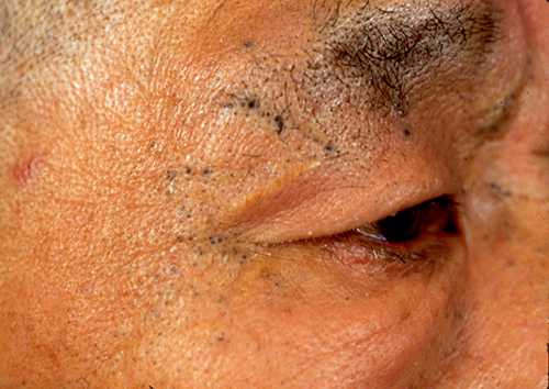 成簇眼眶周粉刺(grouped periorbital comedones)