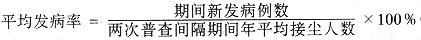 “平均发病率”既可避免通常计算发病率时由于普查间隔时间过长而造成的偏倚,又比计算“人年发病率”简单易行。以某矿1985年尘肺普查结果为例,该矿1980年进行过一次普查,1981~1985年接尘人数依次为384、426、490、556、673人。1985年查出新发病例26人。以1985年接尘人数为分母计算,发病率为3.86%;以5年平均接尘人数为分母计算,发病率为5.14%。两者相差较大。从职业疾患与职业暴露的关系上看,后者能较客观地反映该矿1981~1985年的尘肺发病情况。