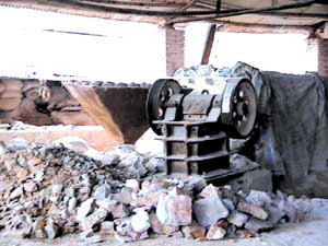 一段时间后,刘心祥发现二儿子总在咳嗽。到1998年,二儿子已经病得不能再去宜兴了,甚至要吸着氧气才能走到自家的院子里,但家人都不知道他害了什么病。直到去年年底,刘老汉才在?东看到了儿子工作的作坊式工厂。这里全部没有采用国家规定的“施湿作业”,不能一边轧石一边喷水,而是干式作业,生生地把大石块磨成砂状。轧砂机一响,淡黄色的粉尘漫天飘扬,3米之内不能辨人。没有防尘装置,也没有防尘面罩,民工们在这样的环境下,一天要工作15个小时。