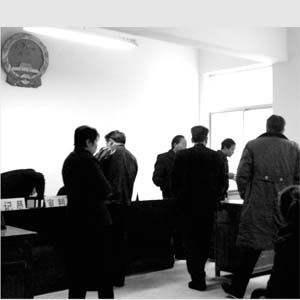 无法获得劳动部门工伤鉴定报告的其他山阳患病民工及死者家属专门赶赴洛南旁听 记者 王鹏 摄