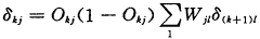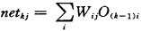 设神经网络输入层的p个节点,输出层有q个节点,k-1层的任意节点用l表示,k层的任意节点用j表示,k+1层的任意节点用l表示。Wij为k-1层的第i个神经元与k层的第j个神经元相连接的权值。k-1层的节点i输出为O(k-1)i,k层节点j的输出为: