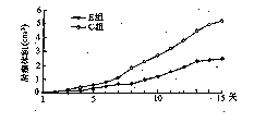实验组受抑制,随着荷瘤鼠生存时间延长,两组肿瘤生长速度差别逐渐增大。两组进行t检验P<0.05。肿瘤体积抑制率及重量抑制率见表1、表2。曝磁后15天对照组与实验组肿瘤生长体积和重量存在明显差异,P<0.01。瘤体积抑瘤率为52.94%,重量抑瘤率为37.24%。