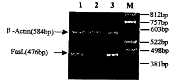 图2 乳腺癌MCF-7细胞FasL mRNA的RT-PCR检测结果。