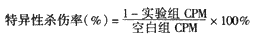 5. 效应细胞杀伤活性的测定:3H-TdR释放法[8]。(1) 标记靶细胞:取前1天传代的靶细胞,调整细胞浓度为1×106/ml。在0.8 ml靶细胞悬液中加入90.9 μci/ml的3H-TdR 100 μl,标记4小时,每半小时摇1次,标记后洗3次,调整细胞浓度为2×105/ml。(2)效应细胞洗3次,调整细胞浓度为5×106/ml 。(3)效靶结合:96孔板中先加入靶细胞50 μl/孔,后加效应细胞100 μl/孔,空白孔仅加100 μl 效应细胞培养液,效靶比为50:1。培养18小时,于培养终止前半小时加入含0.6 mg的胰蛋白酶、10 μg DNA酶的混合酶液50 μl/孔,振荡后继续培养30分钟收集细胞,烘干后测定CPM值。