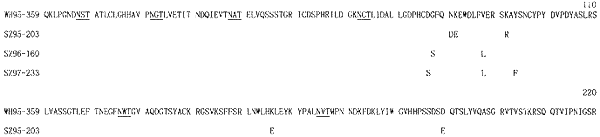 Fig.2 The deduced amino caid sequences of the HA gene HA1 region of the three H3N2 viruses compared withthat of one reference strain“-”indicated potential glycosylation site