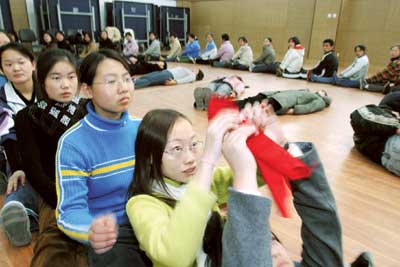昨天上午,一个别具一格的多米诺骨牌红丝带传递活动在中国农业大学举行。与以往多米诺骨牌活动不同的是,这次活动是由人体多米诺和实物多米诺骨牌相结合的形式。