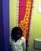 南非9岁儿童杰迪·格莱丝·兰德是一个不幸的孩子,她的母亲在1996年死于艾滋病的相关疾病,更不幸的是她自己也感染了艾滋病。但是同那些被遗弃的艾滋病孤儿相比,她已经是非常幸运的了。母亲去世后,姨妈收养了她,现在她是少数得到救治的艾滋病患者之一,每天两次定时服药。随着死于艾滋病的南非人不断上升,艾滋病已经成为南非的第一大“杀手”。据统计,目前世界上已有1340万15岁以下的儿童因父母患艾滋病死亡而沦为孤儿,而情况最严重的是南部非洲。据估计,南非艾滋病孤儿人数也将从2001年的66.2万人增加到2005年的132.8万人,到2010年将猛增到170万人。图为杰迪到艾滋病医院检查,绘有长颈鹿图案的医院墙壁或许能让她感受到细腻的关怀。