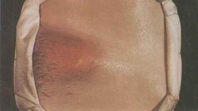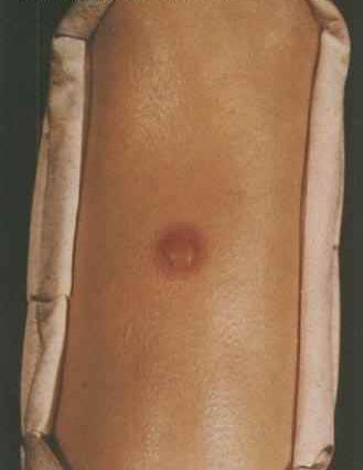 图 注:腹股沟淋巴结明显肿胀,皮肤紫红色,压痛明显,尚未破溃。