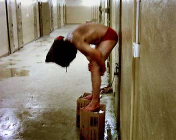 美国女兵林迪-英格兰在虐囚丑闻曝光被送回美国时已经有五个月的身孕,目前她正面临军事法庭的审判,在审判之前她现在每天在美本土布莱格堡陆军基地做些擦洗墙壁的工作。