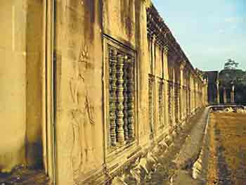 吴哥寺:雄伟的尖塔可以沿台阶攀爬,但要注意安全,寺中还有长达800米的世界上最长的浮雕回廊,精美绝伦。