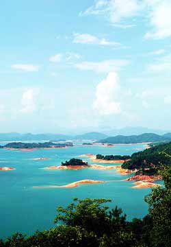 这绿色琼浆从何而来,是否是天上瑶池漏洒,抑或是,因湖水是上天所赐,但普天之下无处不雨,为何却有万绿之水独绿?问浮在水面的岛屿,岛屿无语望天,似云:只因天上瑶池漏,人间才有万绿湖。