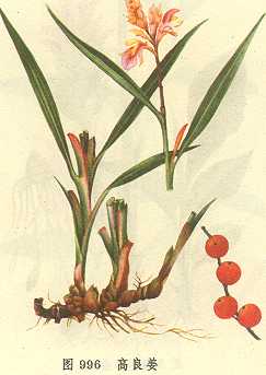 1、霍乱吐泻。用高良姜(炙令焦香)五两,加酒一升,煮三、四沸,一次服完。