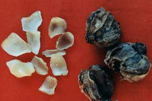 药材 干燥的鳞叶,呈长椭圆形,披针形或长三角形,长约2-4厘米,宽约0.5-1.5厘米,肉质肥厚,中心较厚,边缘薄而成波状,或向内卷曲,表面乳白色或淡黄棕色,光滑细腻,略有光泽,瓣内有数条平行纵走的白色维管束。质坚硬而稍脆,折断面较平整,黄白色似蜡样。气微,味微苦。以瓣匀肉厚、色黄白、质坚、筋少者为佳。