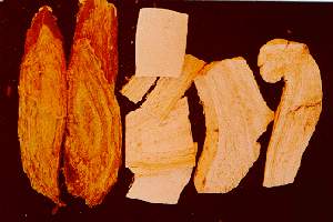 药材 干燥块根呈长圆术形。质硬而重,富粉性,并含大量纤维,横断面可见由纤维所形成的同心性环层,纵切片可见纤维性与粉质相间,形成纵纹。无臭,味甘。以块肥大、质坚实、色白、粉必足、纤维性少者为佳。