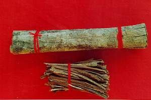 根朴:为根皮经加工后卷成单或双卷,多劈破,形弯曲如鸡肠。