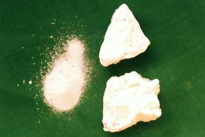 药材 由菱形、柱形或粒状结晶组成的不整齐块状,大小不一,无色透明或白色半透明,有玻璃样光泽,日久则风化成白色粉末,不透明,微有脂肪样光泽。体轻,质脆易碎。气无,味咸苦,以无色透明洁净的结晶为佳。可溶于冷水,易溶于热水中,溶液显碱性。