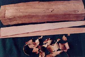 药材 分黄檀香和白檀香两种,多呈圆柱形或微扁;挺直,少数微有弯曲。表面淡黄棕色,放置日久则颜色较深,外表光滑细致,可见细长的纵裂隙。以色黄、质坚而致密、油性大、香味浓厚者为佳。