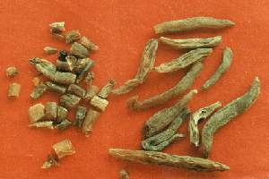 药材 干燥的块根呈长圆纺锤形,中部肥满,两端渐细而钝。表面黄白色或浅黄棕色,呈油润半透明状,有时有细纵纹或纵沟,偶有未除净的黄棕色外皮。干透者质坚硬而脆,未干透者质柔软,有粘性,断面蜡质样,黄白色,半透明,中间有不透明白心,臭微,味甘微苦,以肥满、致密、黄白色、半透明者为佳。条瘦长、色黄褐、不明亮者质次。
