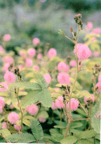 | 植物形态: | 多年生草本或半灌木,高达1m。茎多分枝,遍体散生倒刺毛或锐刺。2回羽状复叶,羽片2~4,掌状排列,小叶14~48,长圆形,长6~11mm,宽1.5~2mm,边缘及叶脉有刺毛;叶柄长1.5~4cm;托叶披针形,有刺毛。头状花序长圆形,2~3个腋生;花小,淡红色;花萼钟状,有8个微小萼齿;花瓣4,基部合生;雄蕊4,伸出于花瓣之外。荚果扁,边缘有刺毛,有3~4荚节,每节2种子,成熟时节间脱落。花期3~10月,果期5~11月。 |
