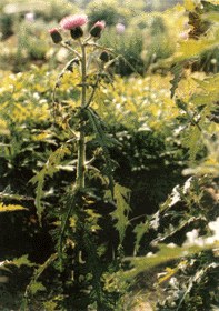 植物形态 多年生草本,高0.5~1m。根簇生,圆锥形,肉质,表面棕褐色。茎直立,有细纵纹,基部有白色丝状毛。基生叶丛生,有柄,倒披针形或倒卵状披针形,长15~30cm,羽状深裂,边缘齿状,齿端具针刺,上面疏生白我丝状毛,下面脉上有长毛;茎生叶互生,基部心形抱茎。头状花序顶生;总苞钟状,外被蛛丝状毛;总苞片4~6层,披针形,外层较短;花两性,管状,紫色;花药顶端有附片,基部有尾。瘦果长椭圆形,冠毛多层,羽状,暗灰色。花期5~8月,果期6~8月。