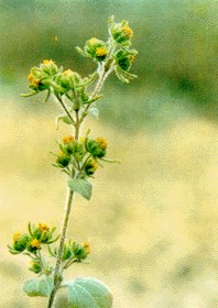 植物形态 一年生草本,高达1m以上,枝上部尤其是花序分枝被紫褐色头状有柄长腺毛及白色长柔毛。叶对生,叶片质薄,两面被短毛,沿叶脉有白色长柔毛,中部叶阔卵形至阔卵状三角形,长7~20cm,宽5~18cm,边缘有大小不等的齿,顶端短渐尖。头状花序直径2~3cm,多数,排成伞房状;外层总苞片长1~1.5cm;舌状花长约3.5mm。瘦果长约3.5mm。花期8~10月,果期9~12月。