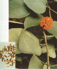 性状 小瘦果扁圆形或扁卵形,长约2mm,宽1.5~2mm。表面橙红色或棕红色,有微细网状纹理或颗料状突起,一侧边具凹沟,另侧边具棱线,基部有子房残痕。质硬,内含种子1粒;种皮红棕色,种仁白色,油质。味淡。