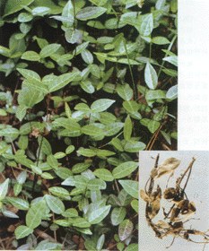 性状 茎呈圆柱形,弯曲,多分枝,长短不一,直径1~5mm;表面红褐色,有点状皮孔及不定根;质硬,断面淡黄白色,常中空。叶对生,有短柄;展开后叶片呈椭圆形或卵状披针形,上表面暗绿色或深绿色,下表面色较淡,革质。气微,味微苦。