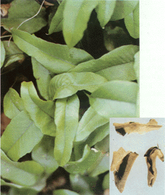 | 附注: | 叶片略皱缩,展平后呈披针形或长圆披针形,基部楔形,对称;孢子囊群在侧脉间,排列紧密而整齐。叶柄长5~10cm,直径约1.5mm。 |