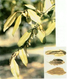 性状 叶椭圆形,革质,边缘多卷曲。上面淡黄色至黄棕色,下面银白色,散布有褐色鳞片,尤以主脉附近为多;叶柄褐色。气微,味微苦。