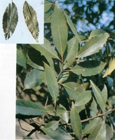 性状 叶长椭圆形,长6~12cm,先端急尖或渐尖,基部楔形,边缘具疏浅锯齿,上表面棕褐色或灰绿色,有光泽,下表面色较浅。叶柄长约1cm。气微清香,味苦涩。