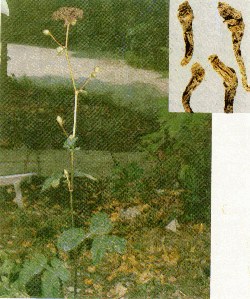 化学成分 含紫花前胡甙(nodakenin)、紫花前胡素(decursin)、紫花前胡次素(decursidin)、印枳素(marmesin)、3’- 异戊酚- 4’- 0- 当归酰- 3’,4’- 二氢花椒树皮素(3’-isovaleroyl-0-angeloyl-3’,4’-dihydroxanthyletin)、伞形花内酯(umbelliferone)等。