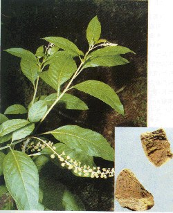 植物形态 多年生草本,高约达1.5m。叶互生,卵圆形或椭圆形,长12~25cm,宽5~10cm;叶柄长3cm。总状花序顶生或与叶对生;花被片5,卵形;雄蕊8;心皮8~10,离生。果穗直立,分果浆果状,扁球形,紫黑色,具宿存花被。花期6~7月,果期8~9月。