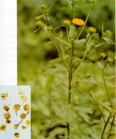 植物形态 多年生直立草本,茎高20~60cm,不分枝,有平伏毛。基生叶及下部叶较小,中部叶披针形、长椭圆状披针形或长圆形,长5~10cm ,宽1~3cm,先端锐尖,基部急狭,无柄或半抱茎,全缘,两面有疏毛。头状花序直径2.5~3cm,多个排成伞房花序,总苞半球形,绿黄色;舌状花1层,黄色,管状花多数,密集。花期7~10月,果期8~11月。