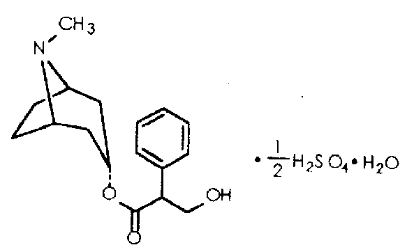 【分子式成分】化学名:α-(羟甲基)苯乙酸8-甲基-8-氮杂双环[3,2,1]-3-辛酯硫酸盐一水合物。分子式:(17H23NO3)2 ˙H2SO4˙H2O。分子量:694.84。