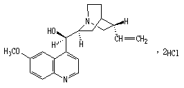 【分子式成分】化学名称:6′-甲氧基-(8a,9R)-辛可宁-9-醇的二盐酸盐。分子式:C20H24N2O2·2HCl。分子量:397.34。