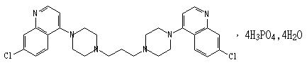 【分子式成分】化学名:1,3-双[4-(7-氯-喹啉-4基)哌嗪-1-基]丙烷四磷酸盐四水合物。分子式:C29H32Cl2N6 ·4H3PO4 · 4H2O。分子量:999.56。
