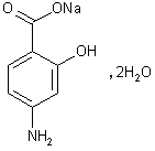 【分子式成分】化学名:4-氨基-2-羟基苯甲酸钠盐二水合物。分子式:C7H6NNaO3·2H2O。分子量: 211.14。性状:本品为白色或类白色结晶或结晶性粉末。无臭,味甜带咸。在水中易溶,在乙醇中略溶,在乙醚中不溶。其2%水溶液的pH值为6-5-8.5。本品水溶液不稳定,遇热可分解,遇光迅速变色。