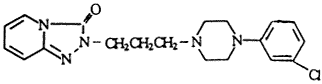 【分子式成分】三唑吡啶类衍生物,其结构为2-[3-[4-(3-氯苯基)-1-哌嗪基]丙基]-1,2,4-三唑[4,3-a]吡啶-3(2H)-盐酸,为一种白色无味品状体粉末,易溶于水。
